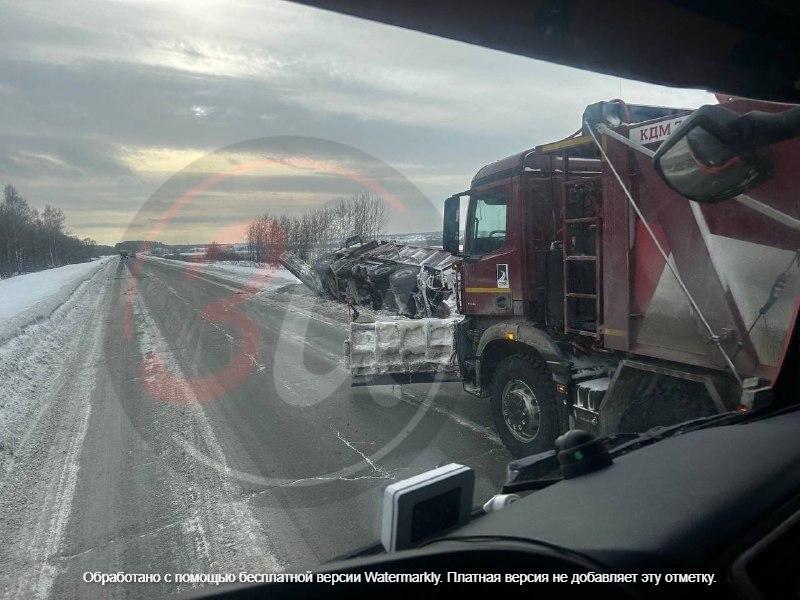 Устал.... На дороге Ижевск — Малая Пурга спецтехника прилегла отдохнуть