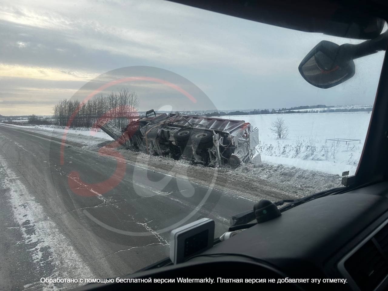 На дороге Ижевск Малая Пурга спецтехника прилегла отдохнуть.
