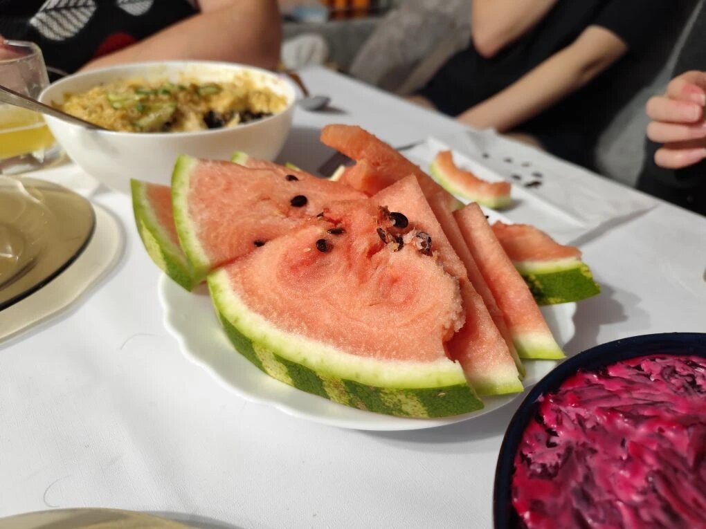 Один из местных семейных кулинарных экспериментов стал настоящим хитом праздника. Гости были приятно удивлены необычным угощением свежим соль-илецким арбузом, представленным в двух версиях: как варенье и в своей натуральной форме, сохраненной с сентября 2025 года.