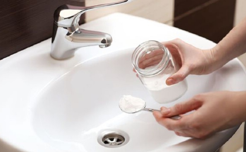 2. Засыпьте в сливное отверстие полстакана соды, стараясь направить её как можно глубже.