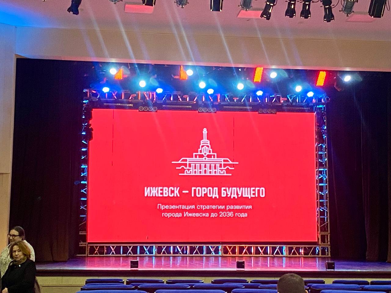 Через несколько минут глава Ижевска Дмитрий Чистяков презентует стратегию развития города до 2036 года в большом зале Государственной филармонии Удмуртии.