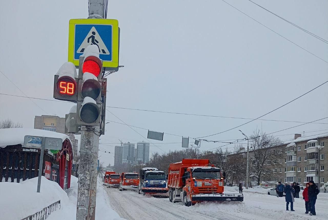 Сегодня днем улицы Ижевска расчищали 126 машин предприятий благоустройства, более сотни рабочих ручного труда
