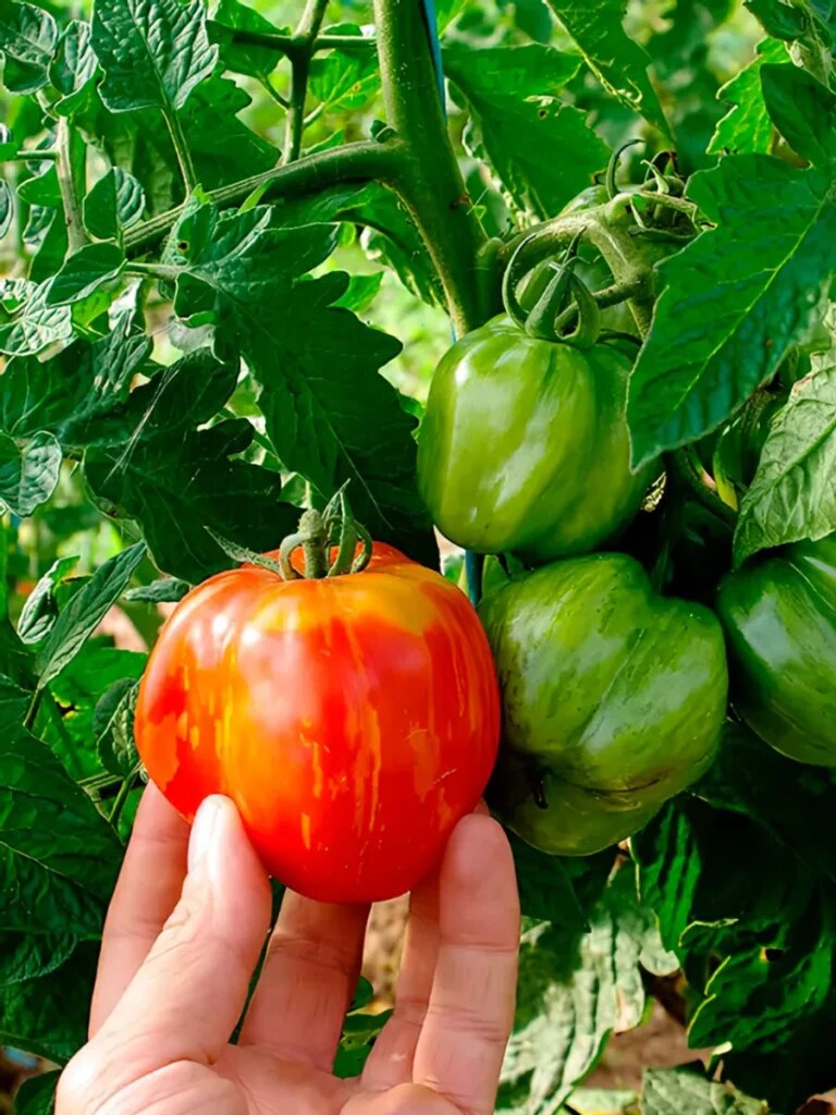 В обычной грядке неожиданность может оказаться простым и ясным решением. Этот томат отличается кубической формой плодов и яркими золотистыми полосами на красной коже, что делает его особенным и узнаваемым в любом сборе.