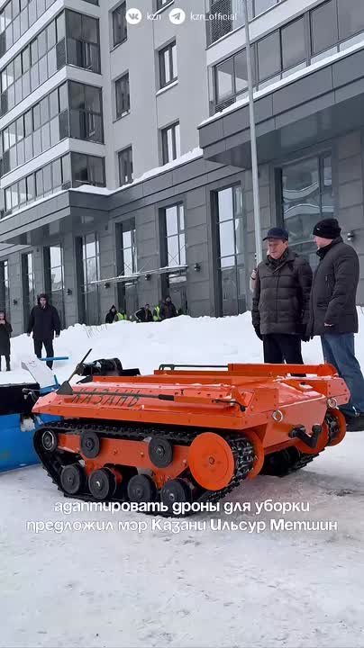 Два агрегата показала казанская мэрия, пишет телеграм-канал Inkazan. А прототипы этих снегоуборщиков выполняют задачи на СВО. Известно, что такой дрон может расчистить участок 100 на 50 метров от снега за 5 минут (такое же время на уборку потребовалось бы 20 дворникам).