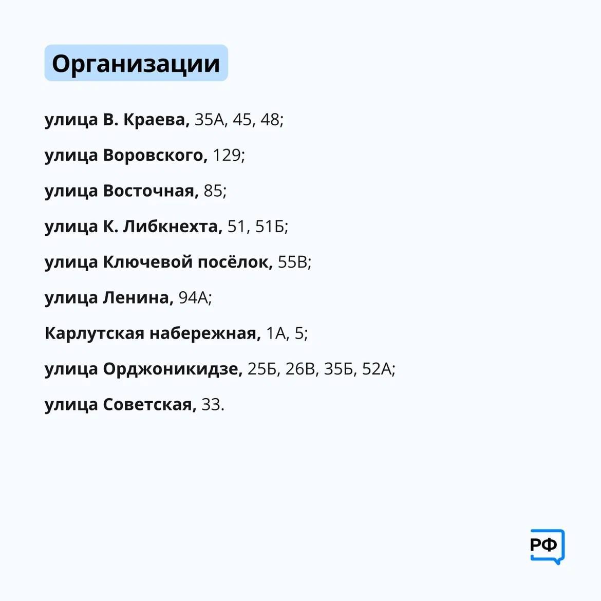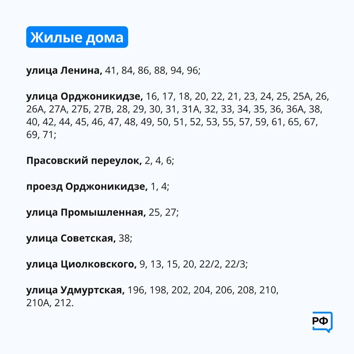 Список жилых домов, соцобъектов и организаций, попадающих под отключение, в карточках