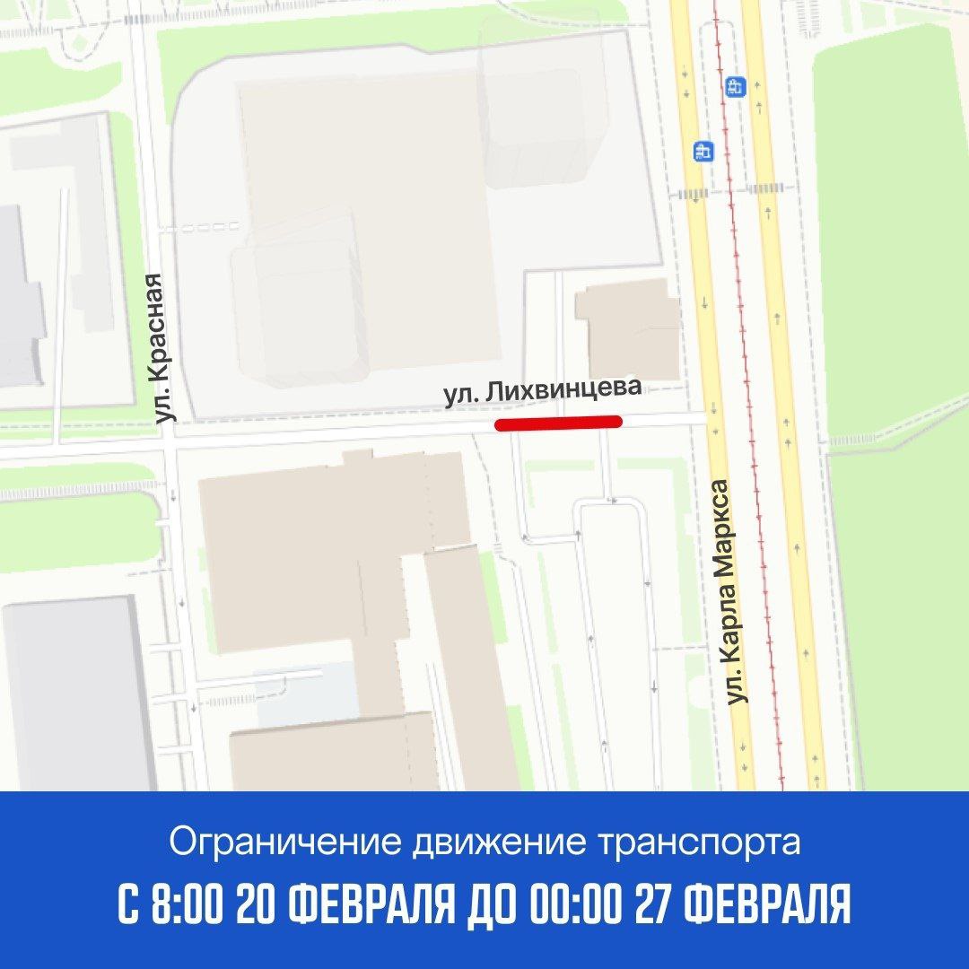 Движение транспорта временно закроют на улице Лихвинцева, в проезде Орджоникидзе и переулке Северном.