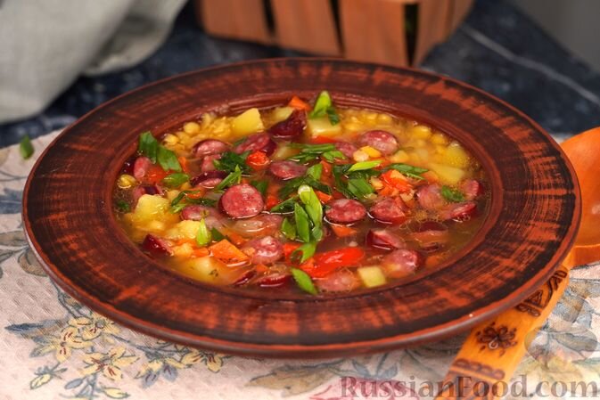 1. Гороховый суп с копчеными колбасками