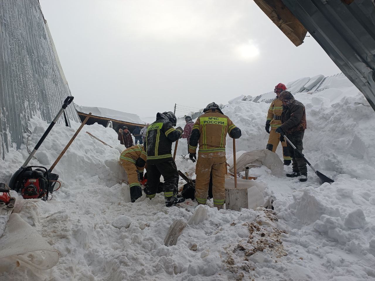 30 коров оказались под снежными завалами при обрушении крыши коровника в селе Турецкое Балезинского района