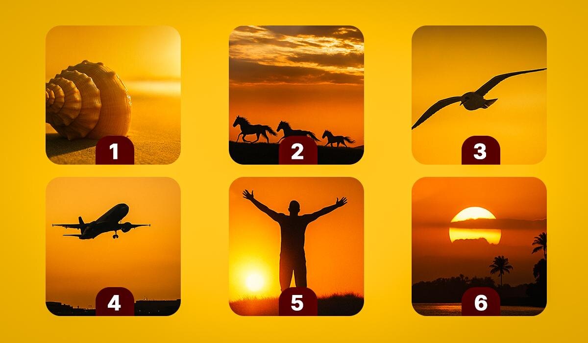 Взгляните на шесть изображений закатов и выберите тот, который больше всего привлекает вас. Далее можно перейти к результатам этого увлекательного теста.