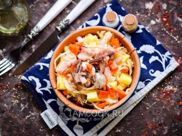 Зимний салат с копченой скумбрией готов! Такой простой и очень сытный вариант ужина порадует всех за столом. Приятного аппетита!