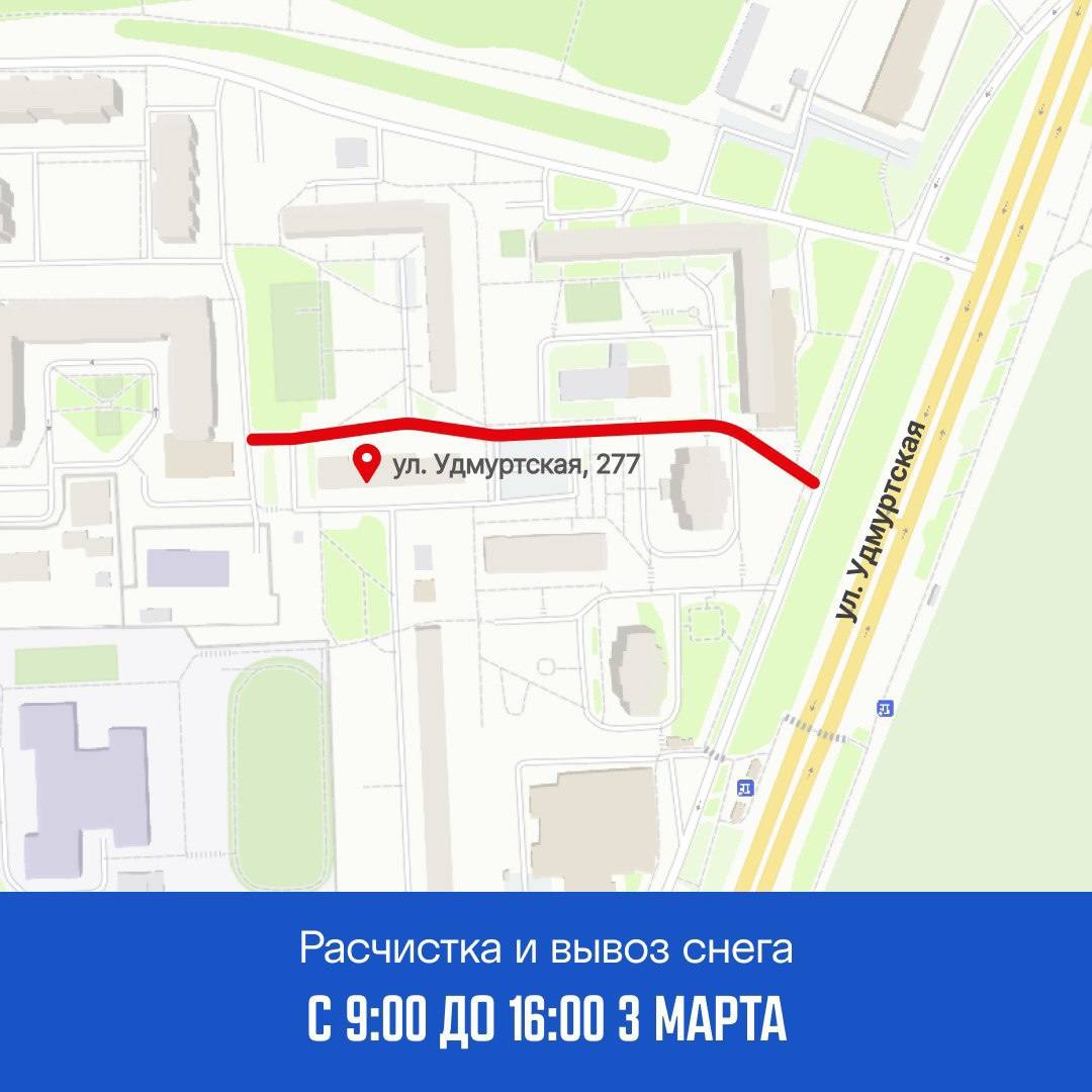 3 марта с 9:00 до 16:00 - проезд вдоль дома по ул. Удмуртская, 277