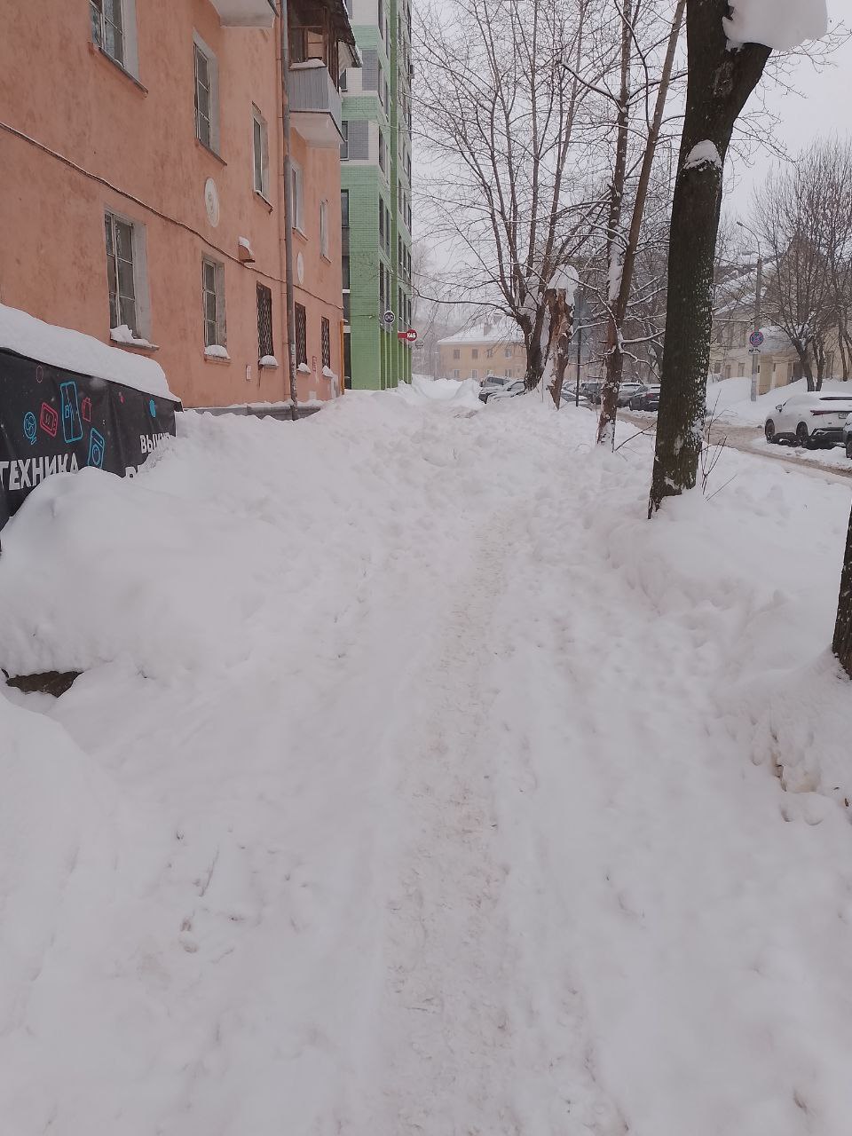 «Ползем по сугробам»: в Ижевске тоннами снега с крыши завалили многолюдный тротуар.