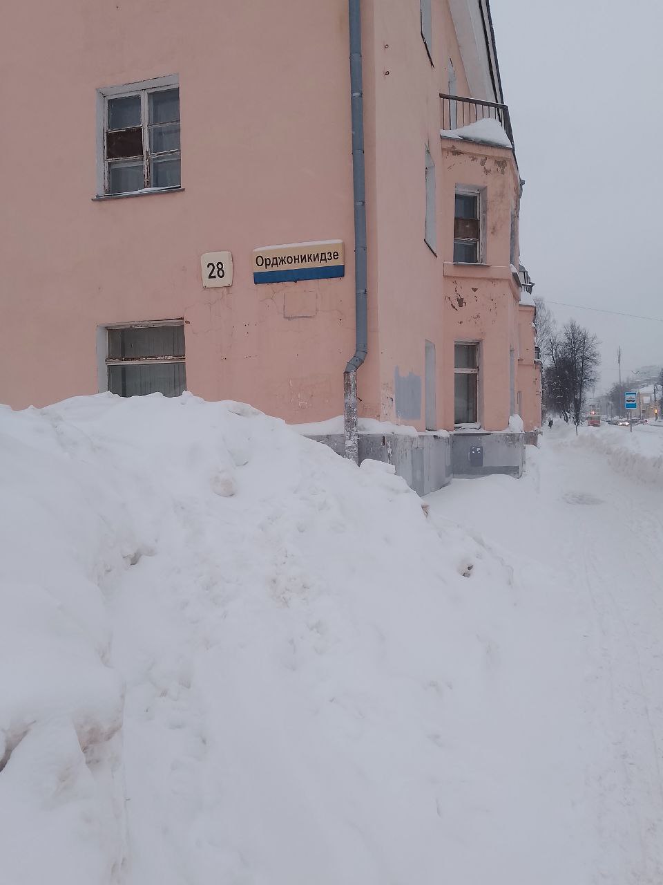 «На фото, где виден зелёный дом, это именно ул. Циолковского, а другие фото — это дом на Орджоникидзе, 28, там тоже скинули снег на тротуар и не убрали. Также с прошлой неделе лежит», — сокрушается ижевчанин.