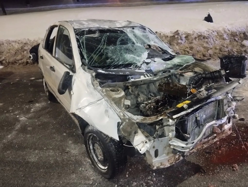Авария случилась около 02:55 на улице Кирова. 19-летняя водитель «Лады Гранты» без прав не справилась с управлением и налетела на снежный вал, после чего перевернулась.