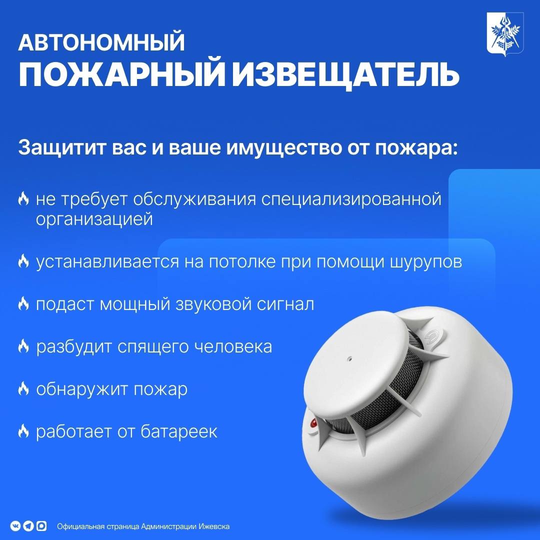 Он работает от батареек, срабатывает уже в первую минуту возгорания и подает мощный звуковой сигнал, разбудит даже спящего.