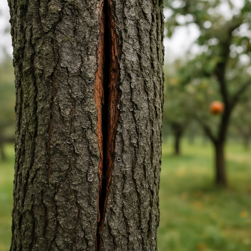 Не редкость, когда после обильных дождей кора яблони трескается, образуя характерные продольные разрывы. Это происходит из-за резкого впитывания влаги, когда дерево всасывает воду быстрее, чем кора успевает адаптироваться. Дополнительно, значительные перепады температур и яркое солнце, появляющееся после дождя, могут усугубить ситуацию. Чтобы спасти дерево, необходимо действовать незамедлительно: подсушить, дезинфицировать и правильно закрыть рану.