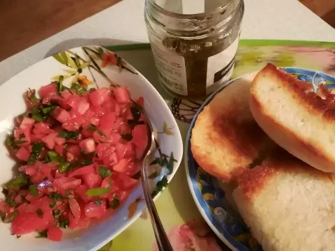 Для начинки подходит спелый, сочный розовый помидор. Его необходимо мелко нарезать, слегка посолить и смешать с рубленной зеленью, такой как петрушка или базилик — выбор остается за вкусом каждого. Оливковое масло, поданное отдельно, добавляет блюду изысканности. Некоторые предпочитают использовать масло, в котором заранее настаивались оливки, что придает ему дополнительный аромат.