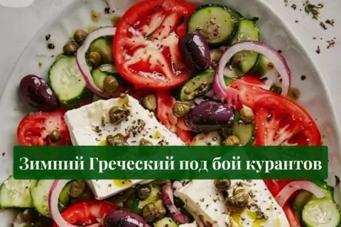 Тут цитрусы добавляют яркость, а маринованные оливки — глубину, превращая знакомую композицию в зимний вариант. Фета сохраняет солоноватую нотку без перегруза.