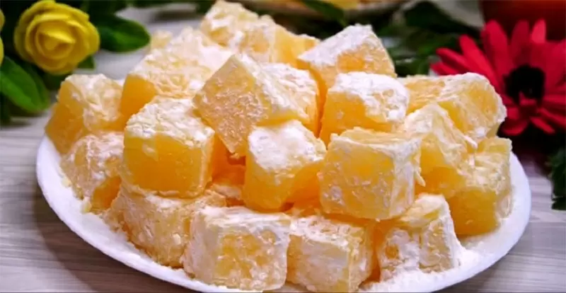 Как только смесь станет великолепно густой и блестящей, её выливают в подготовленную форму и оставляют остывать. Через час рахат-лукум становится идеальным для нарезки и подачи. Облачите каждую дольку в смесь крахмала и сахарной пудры, чтобы предотвратить слипание и добавить необыкновенную шелковистость.