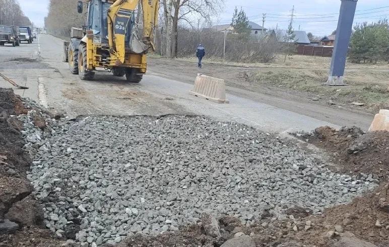 На трассе Ижевск — Воткинск ремонтируют разрушенный асфальт.