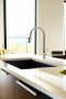 - Кварцевый агломерат: Обладает высоким уровнем прочности и устойчивости к царапинам, что делает его отличным выбором для активной кухни. Термостойкость кварцевых моек позволяет ставить горячие кастрюли и сковороды, сохраняя их внешний вид. Кроме того, благодаря монолитной структуре, они гигиеничны и легко очищаются от пятен, сохраняя безупречный вид.