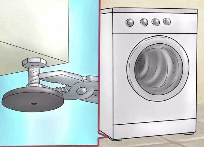 - Следует убедиться в правильной установке машины при помощи строительного уровня. Если поверхность, на которой она стоит, неровная, это также можно исправить.